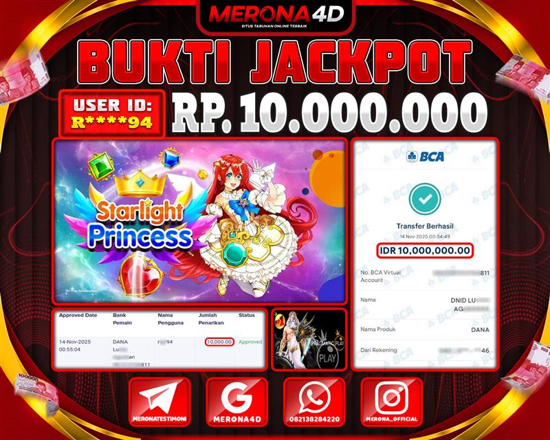 Selamat Kepada Member MERONA4D R*****94 Telah Jackpot Di STARLIGHT PRINCESS