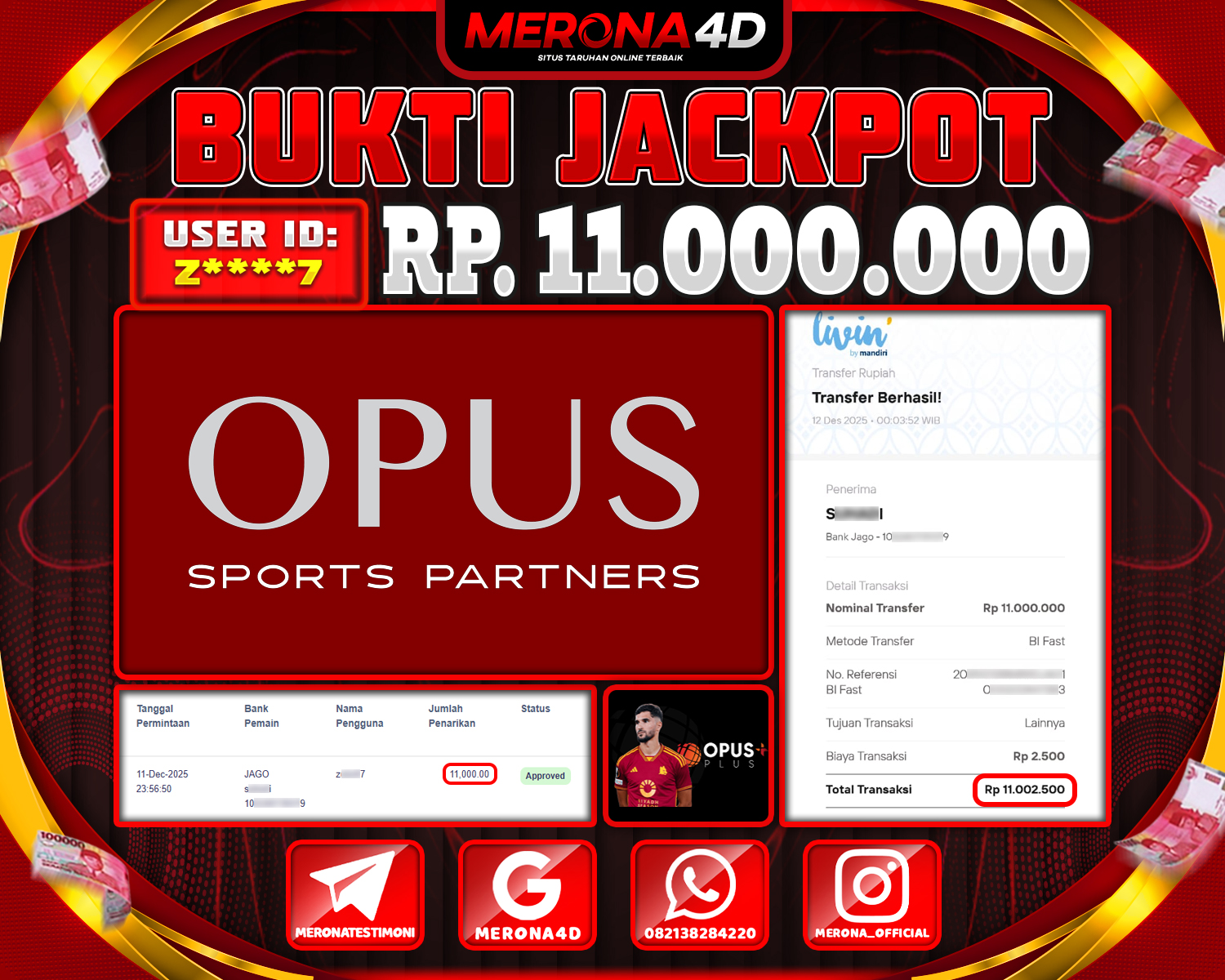 Selamat Kepada Member MERONA4D Z****7 Telah Jackpot Di OPUS SPORTBOOK