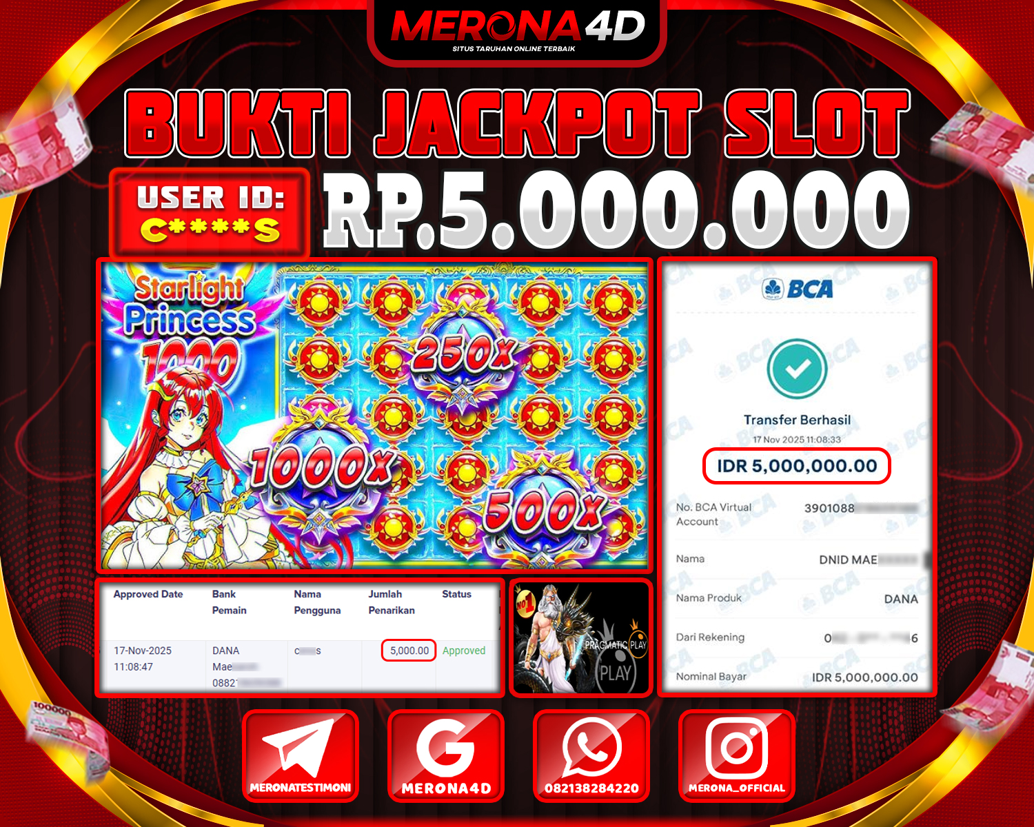 Selamat Kepada Member MERONA4D Cβ­‘οΏ½***οΏ½β­‘S Telah Jackpot Di STARLIGHT PRINCESS 1000