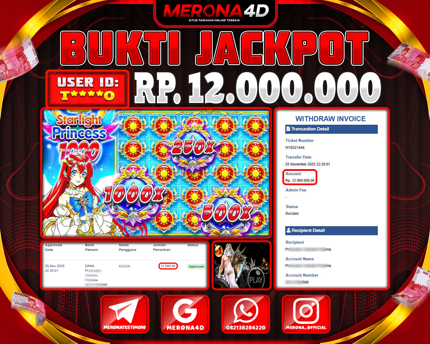 Selamat Kepada Member MERONA4D T*****O Telah Jackpot Di STARLIGHT PRINCESS 1000