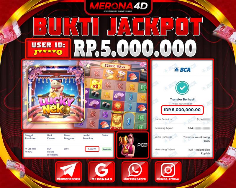 Selamat Kepada Member MERONA4D J****O Telah Jackpot Di LUCKY NEKO