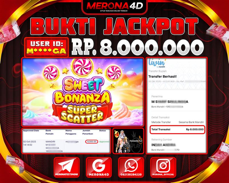 Selamat Kepada Member MERONA4D M*****A Telah Jackpot Di SWEET BONANZA SUPER SCATTER