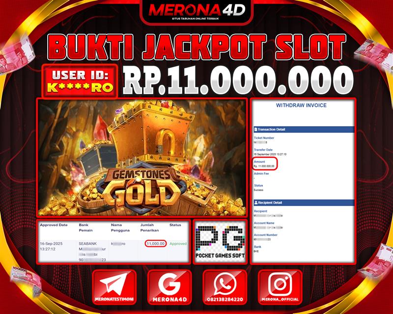 Selamat Kepada Member MERONA4D K*****RO Telah Jackpot Di GEMSTONES GOLD