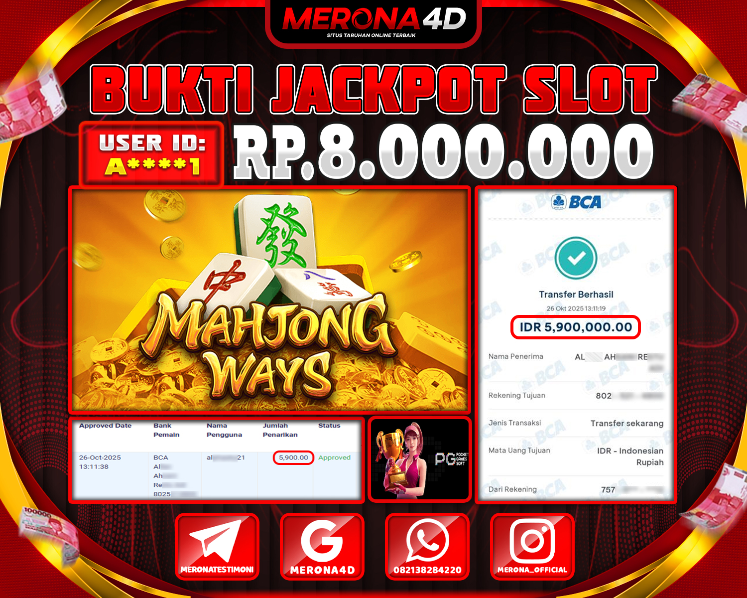 Selamat Kepada Member MERONA4D Aβ­‘οΏ½***οΏ½β­‘1 Telah Jackpot Di MAHJONG WAYS