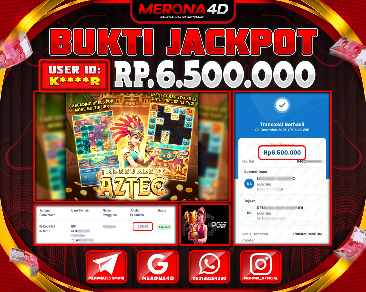 Selamat Kepada Member MERONA4D K****R Telah Jackpot Di TREASURES OF AZTEC