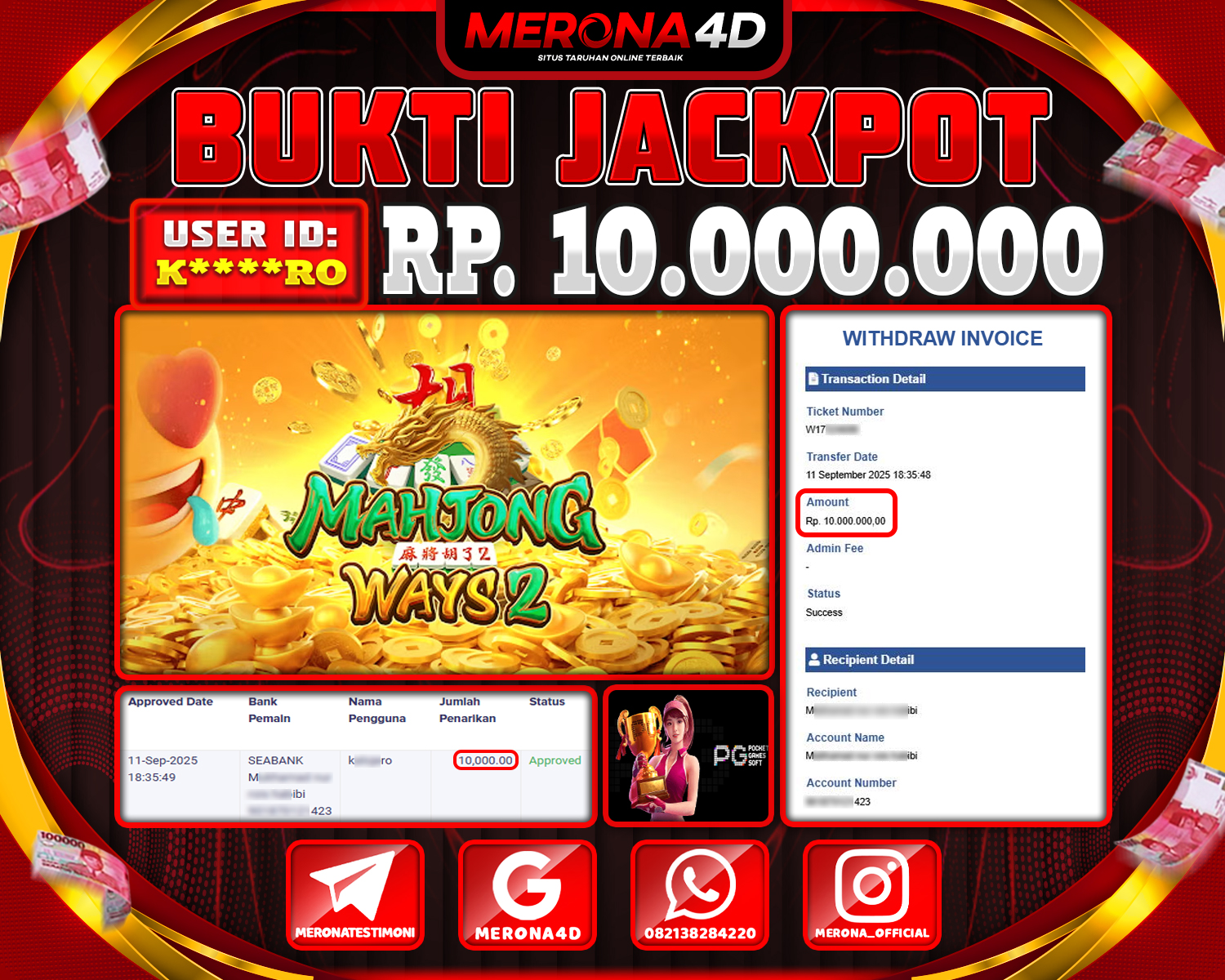 Selamat Kepada Member MERONA4D K*****O Telah Jackpot Di MAHJONG WAYS 2