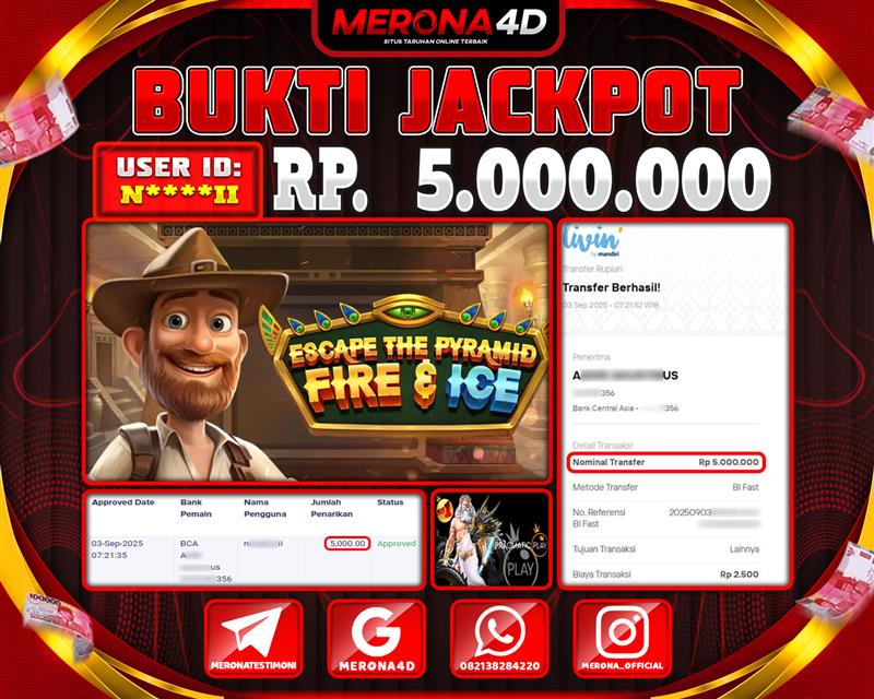 Selamat Kepada Member MERONA4D N*****II Telah Jackpot Di ESCAPE THE PYRAMID – FIRE & ICE