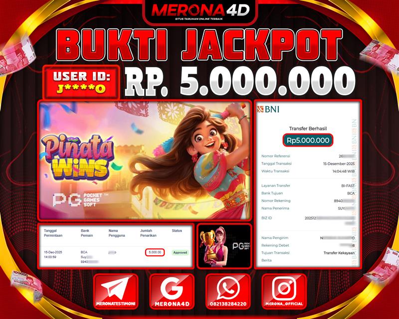 Selamat Kepada Member MERONA4D J*****O Telah Jackpot Di PINATA WINS