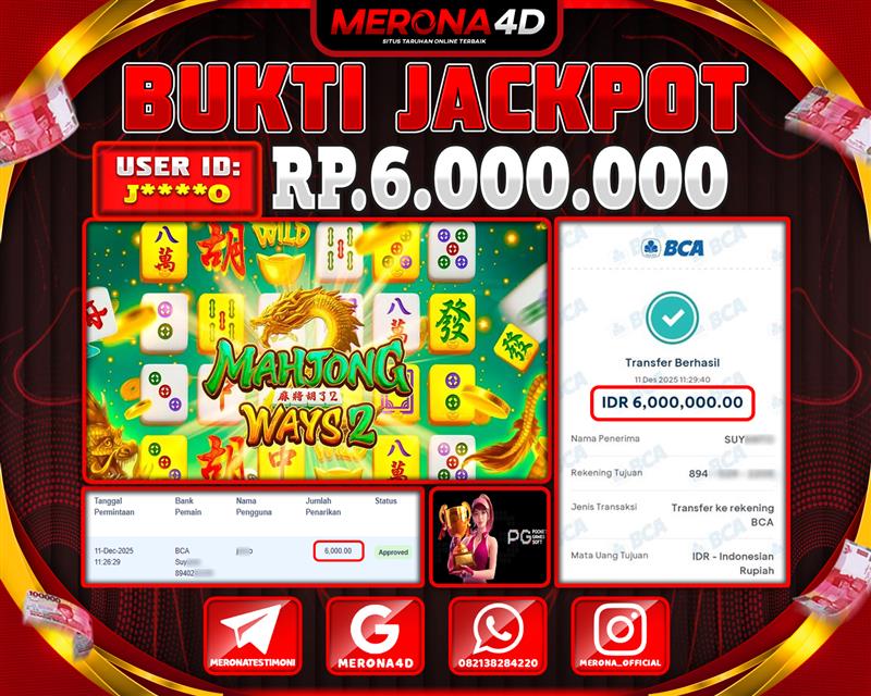 Selamat Kepada Member MERONA4D J*****O Telah Jackpot Di MAHJONG WAYS 2