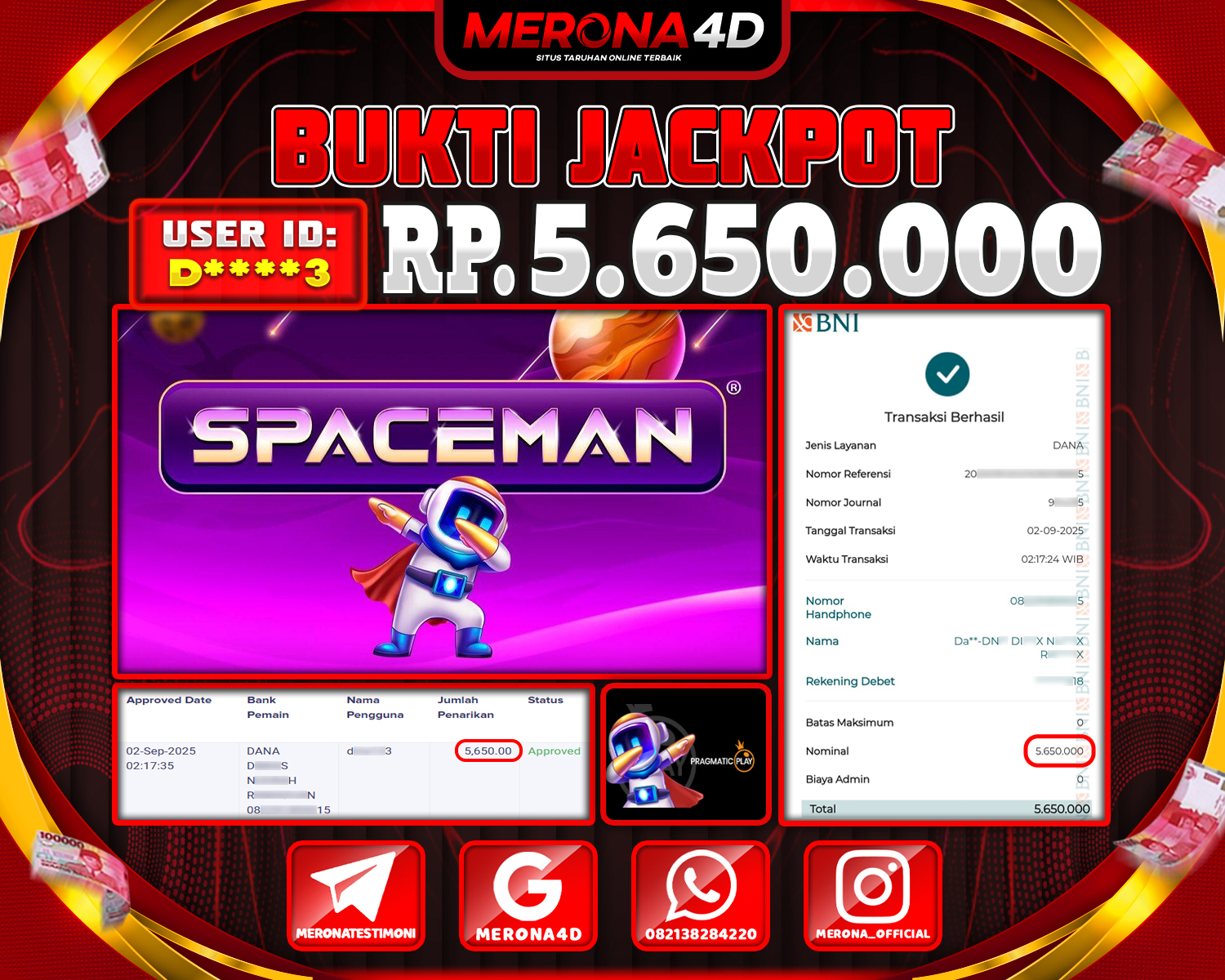 Selamat Kepada Member MERONA4D D****3 Telah Jackpot Di SPACEMAN