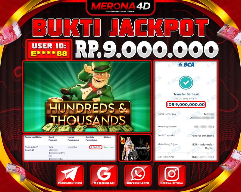 Selamat Kepada Member MERONA4D E*****8 Telah Jackpot Di HUNDREDS AND THOUSANDS
