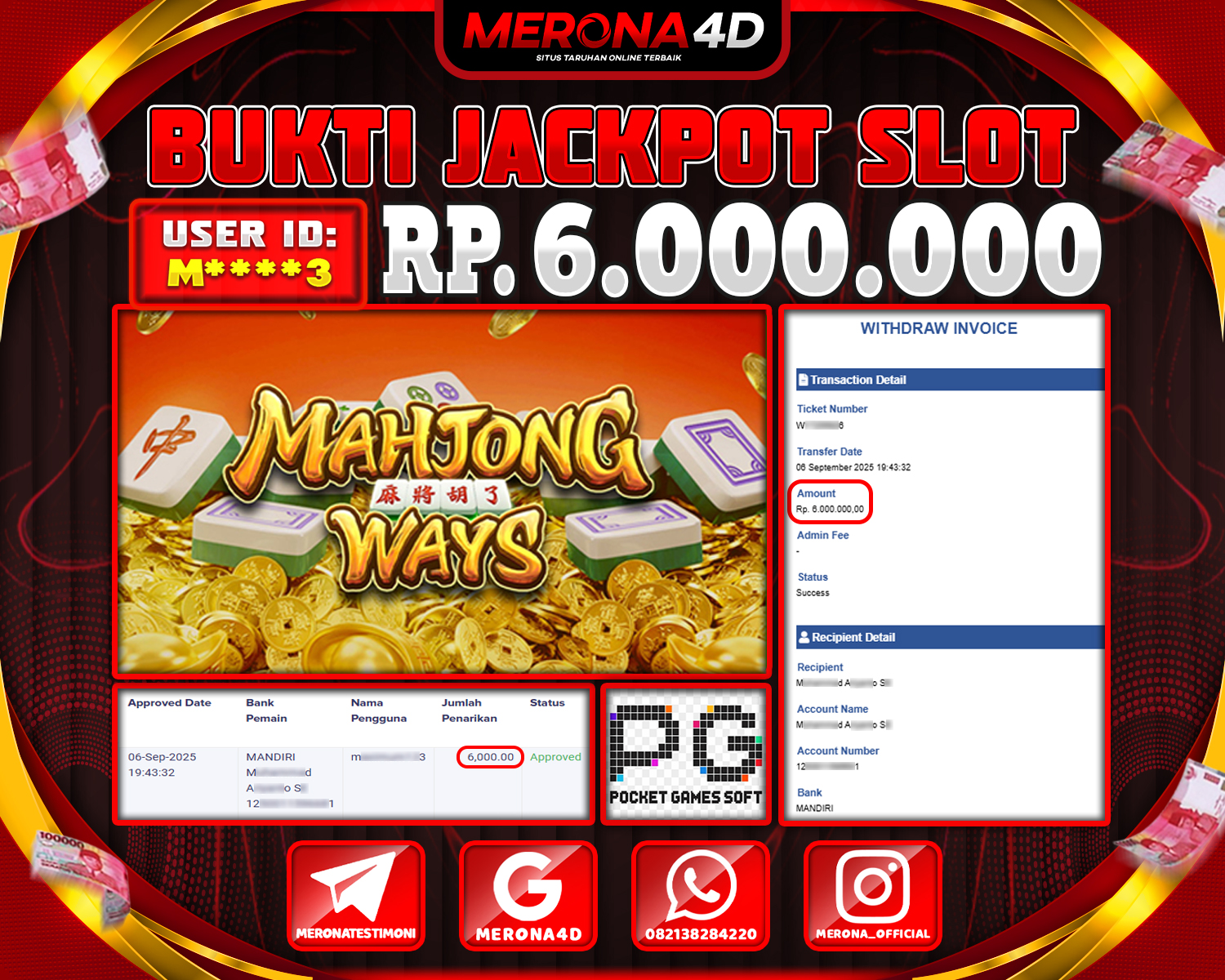 Selamat Kepada Member MERONA4D M****3 Telah Jackpot Di MAHJONG WAYS