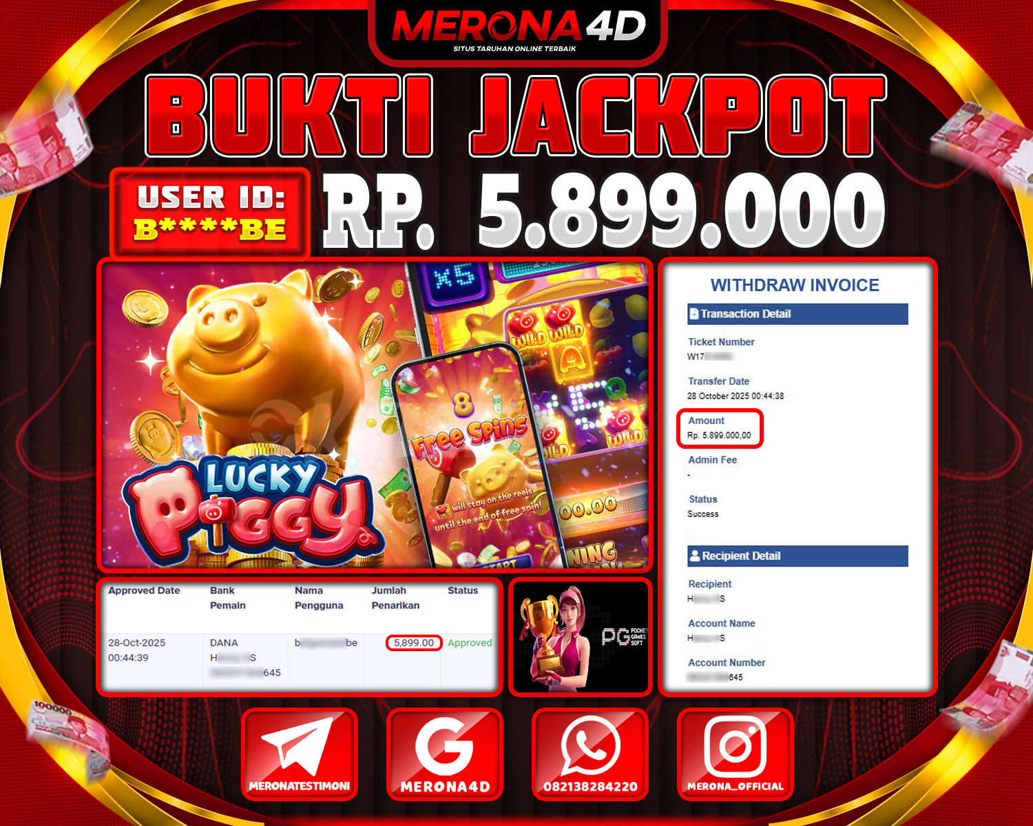 Selamat Kepada Member MERONA4D R*****E Telah Jackpot Di LUCKY PIGGY