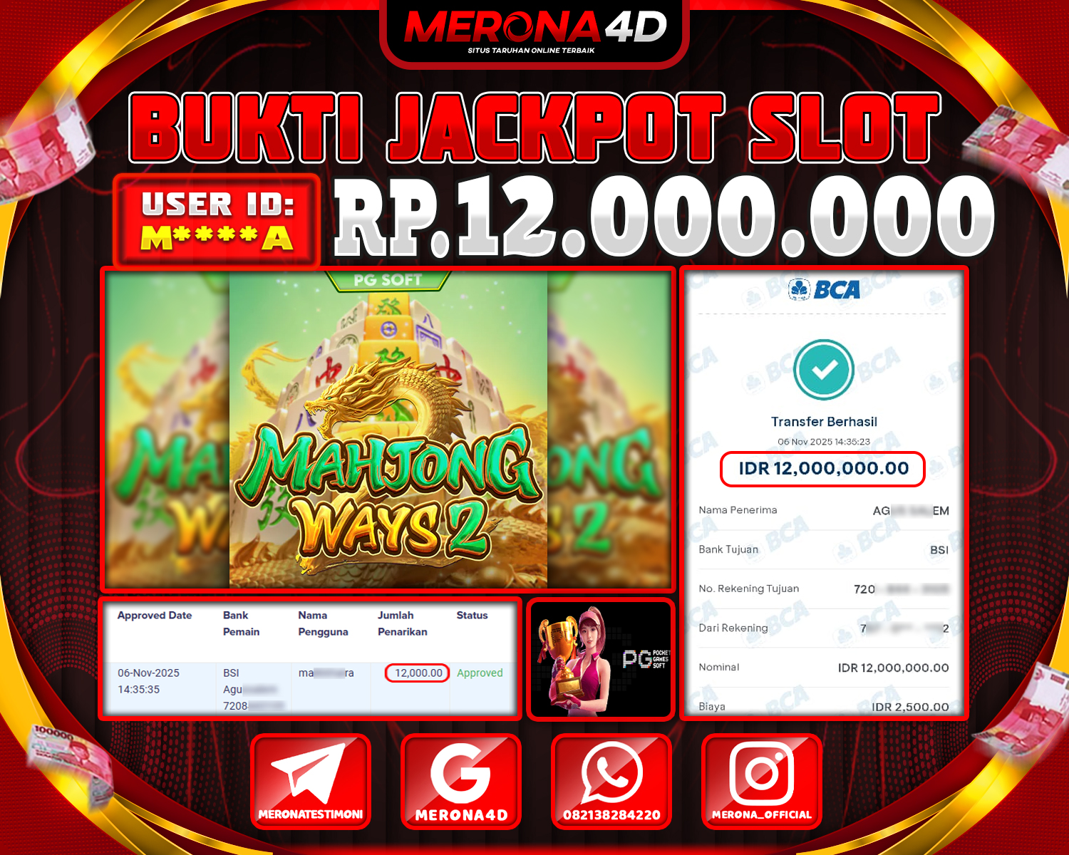 Selamat Kepada Member MERONA4D M****R Telah Jackpot Di MAHJONG WAYS 2