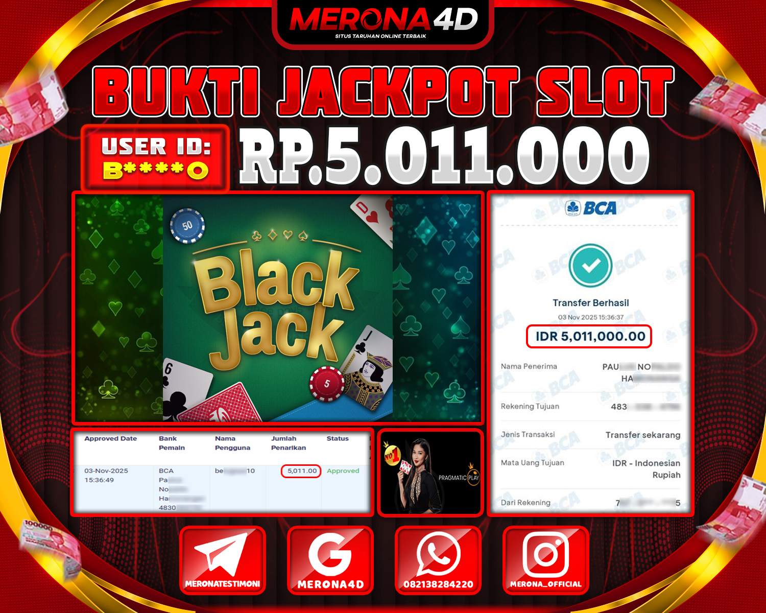 Selamat Kepada Member MERONA4D Bβ­‘οΏ½***οΏ½β­‘0 Telah Jackpot Di BLACKJACK