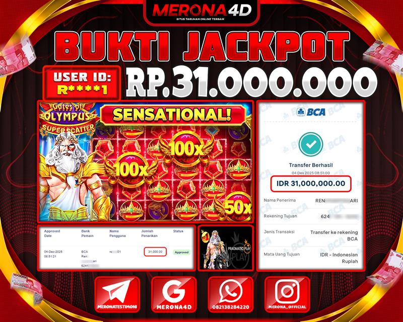 Selamat Kepada Member MERONA4D R****1 Telah Jackpot Di GATES OF OLYMPUS SUPER SCATTER