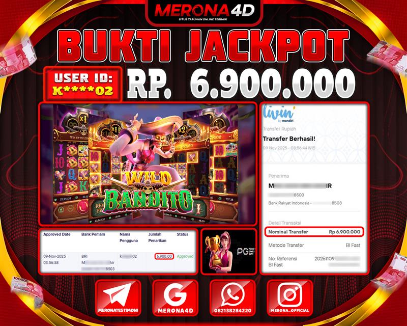 Selamat Kepada Member MERONA4D K*****02 Telah Jackpot Di WILD BANDITO