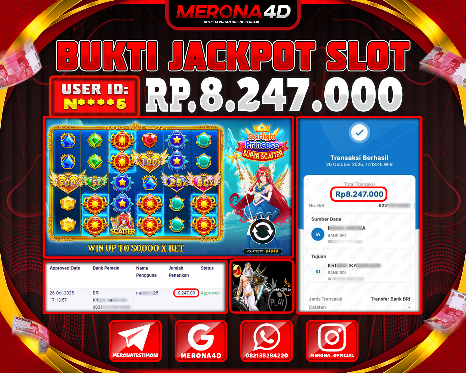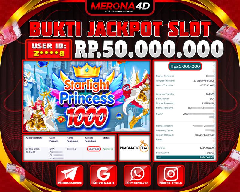 Selamat Kepada Member MERONA4D Zβ­‘οΏ½***οΏ½β­‘6 Telah Jackpot Di STARLIGHT PRINCESS 1000