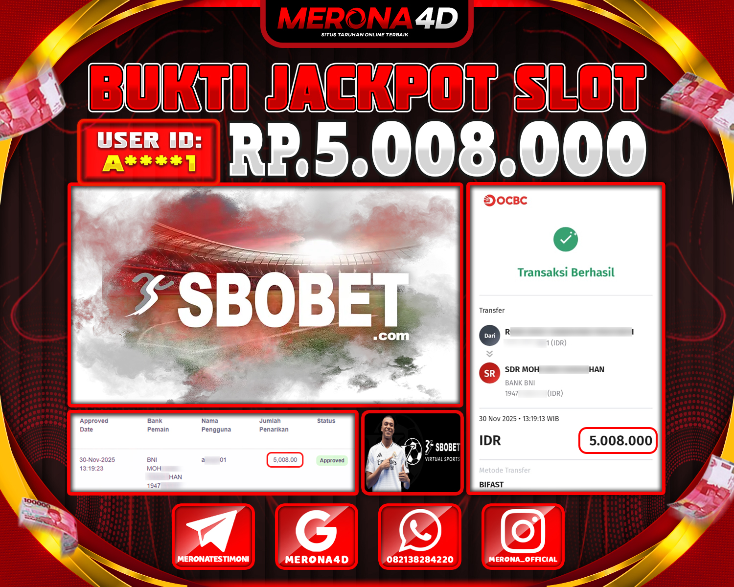 Selamat Kepada Member MERONA4D A****1 Telah Jackpot Di SBO SPORTS BOOK