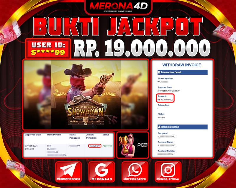 Selamat Kepada Member MERONA4D S*****99 Telah Jackpot Di WILD BOUNTY SHOWDOWN