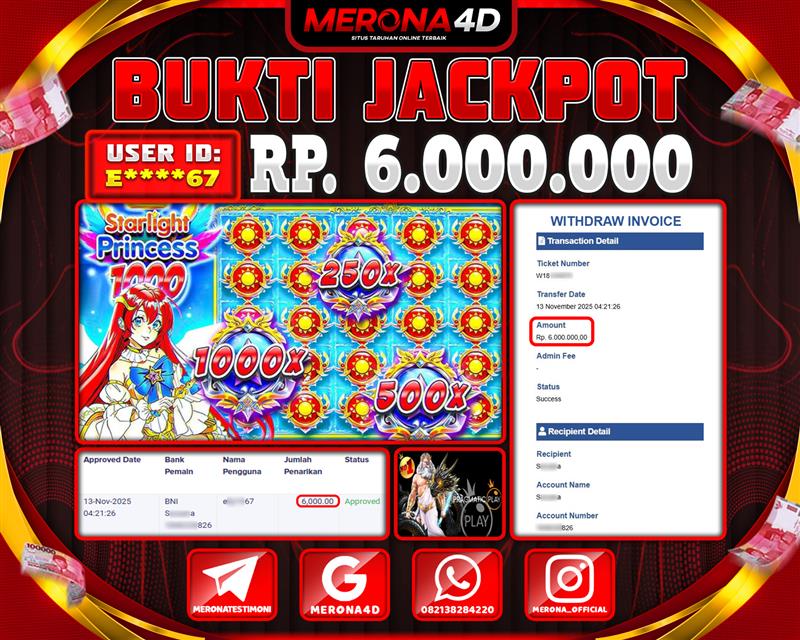 Selamat Kepada Member MERONA4D E*****67 Telah Jackpot Di STARLIGHT PRINCESS 1000