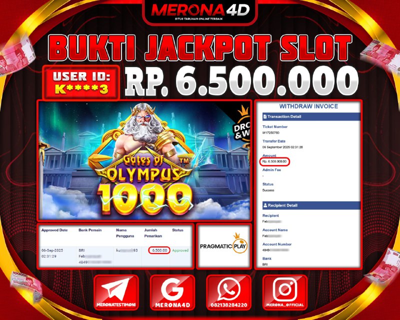 Selamat Kepada Member MERONA4D Kβ­‘οΏ½***οΏ½β­‘3 Telah Jackpot Di GATES OF OLYMPUS 1000