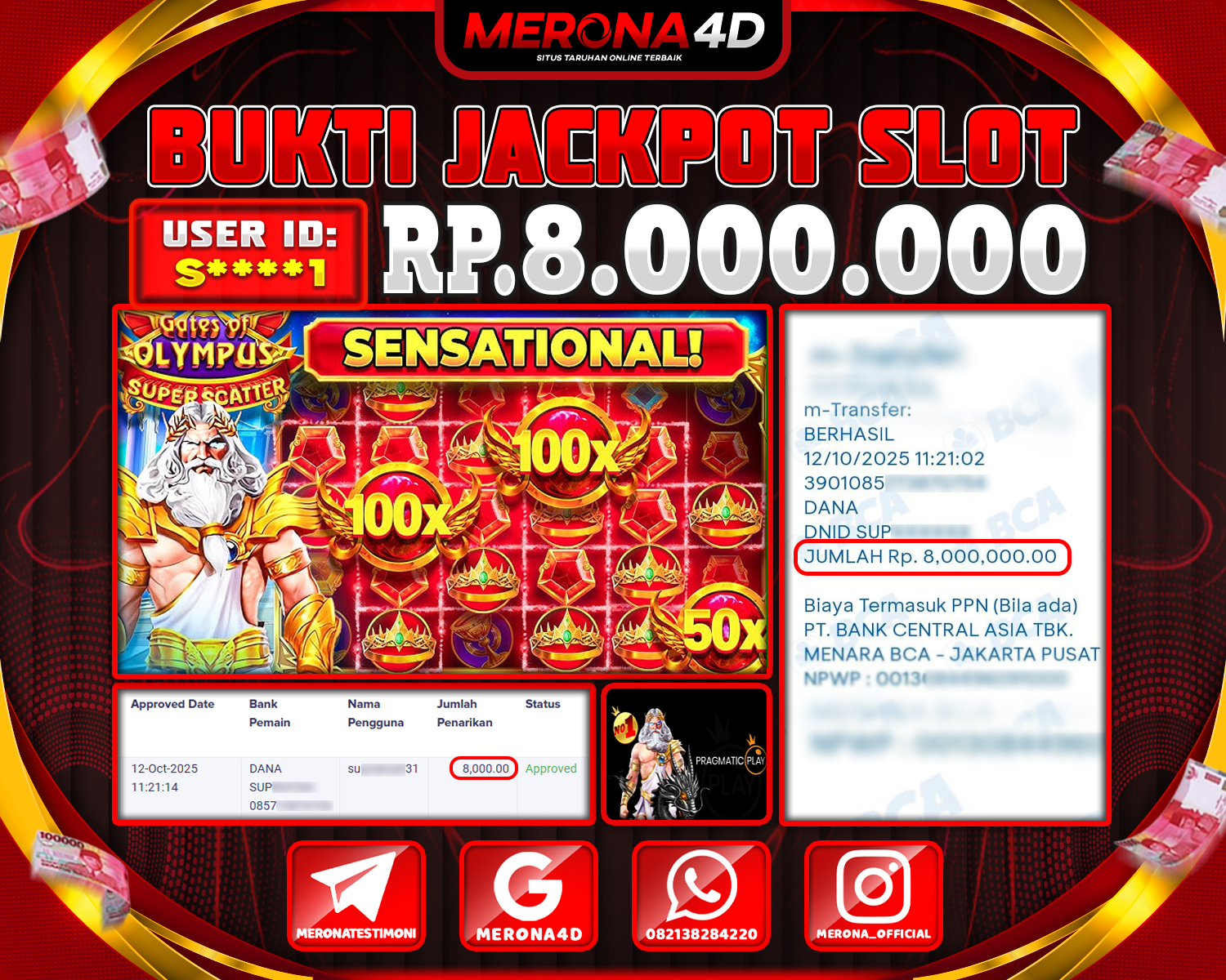 Selamat Kepada Member MERONA4D Sβ­‘οΏ½***οΏ½β­‘1 Telah Jackpot Di GATES OF OLYMPUS SUPER SCATTER