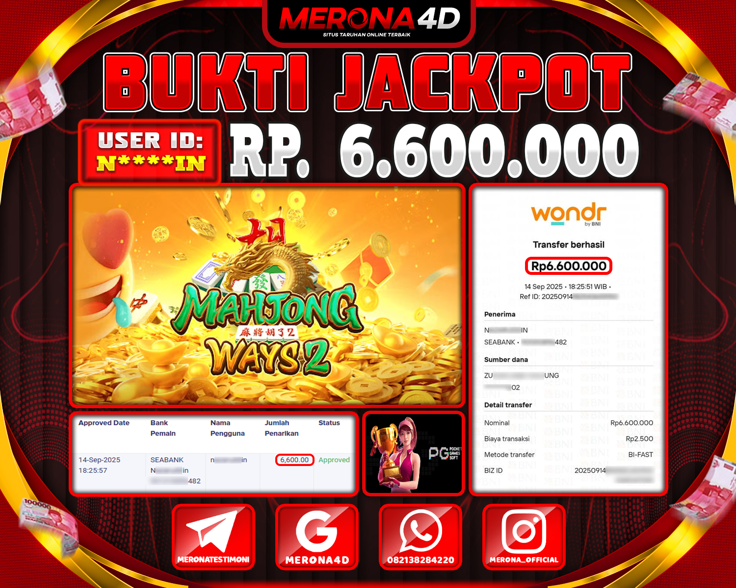 Selamat Kepada Member MERONA4D N*****IN Telah Jackpot Di MAHJONG WAYS 2