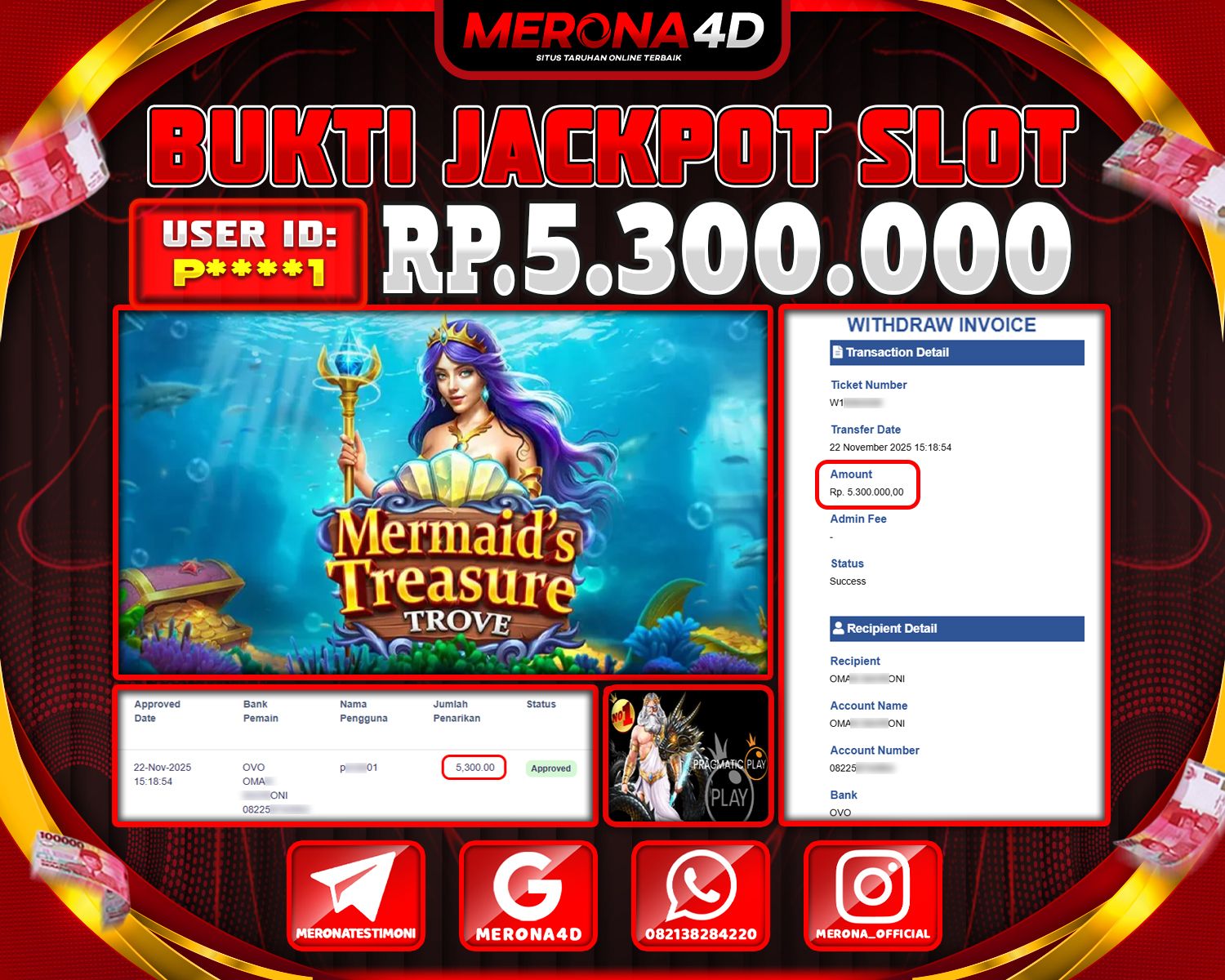 Selamat Kepada Member MERONA4D P****1 Telah Jackpot Di MERMAID'S TREASURE TROVE