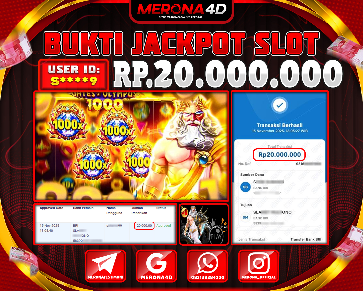 Selamat Kepada Member MERONA4D Sβ­‘οΏ½***οΏ½β­‘9 Telah Jackpot Di GATES OF OLYMPUS 1000