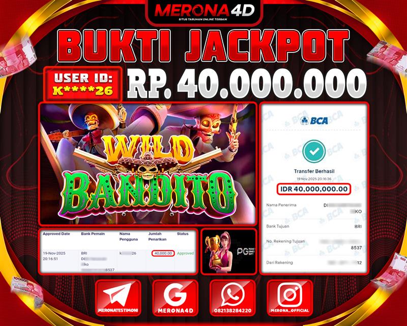 Selamat Kepada Member MERONA4D K*****26 Telah Jackpot Di WILD BANDITO