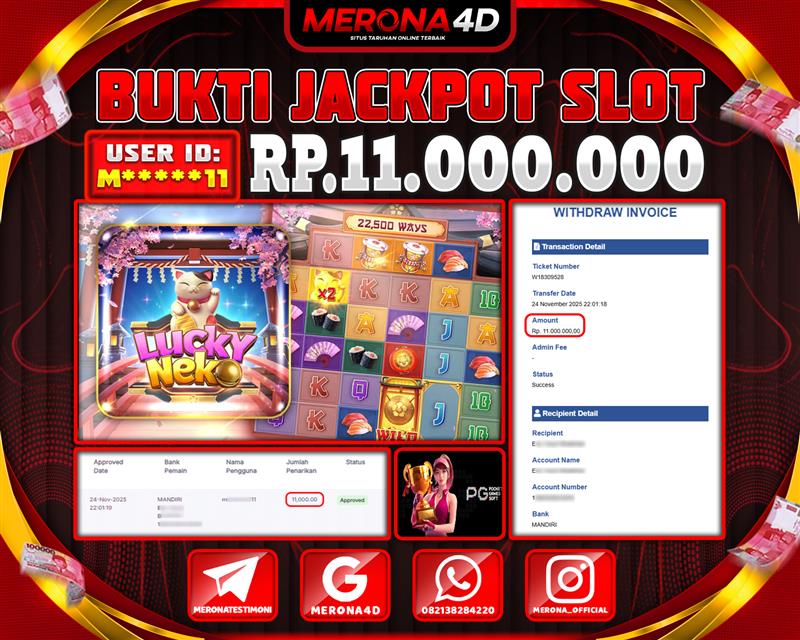 Selamat Kepada Member MERONA4D M*****11 Telah Jackpot Di LUCKY NEKO