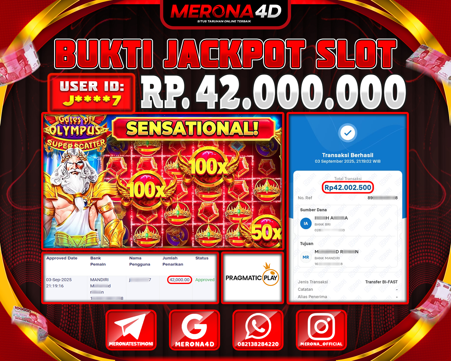 Selamat Kepada Member MERONA4D J****7 Telah Jackpot Di GATES OF OLYMPUS SUPER SCATTER