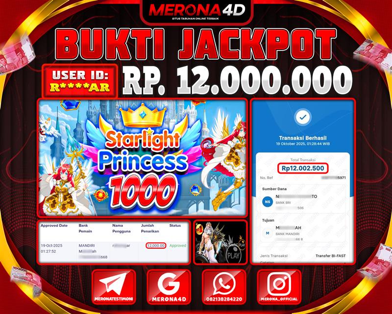 Selamat Kepada Member MERONA4D R*****AR Telah Jackpot Di STARLIGHT PRINCESS 1000