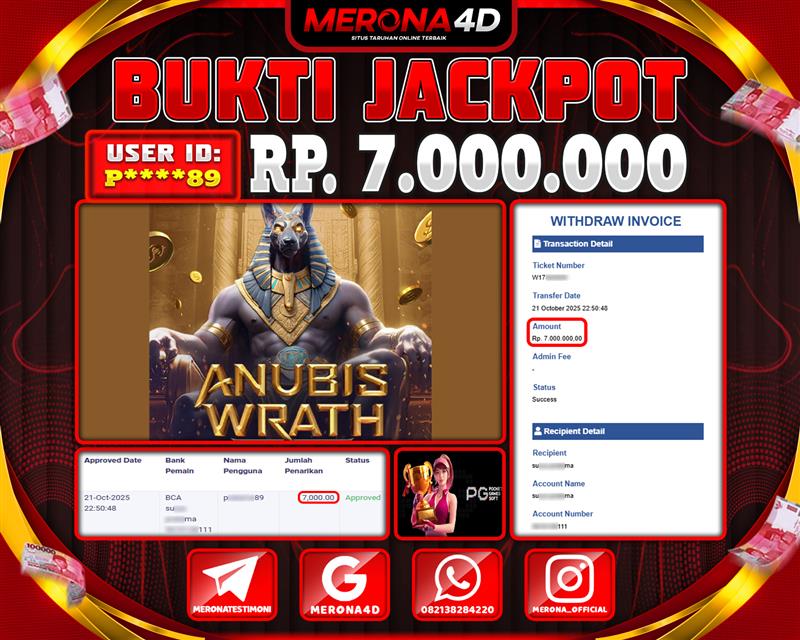 Selamat Kepada Member MERONA4D P*****89 Telah Jackpot Di ANUBIS WRATH