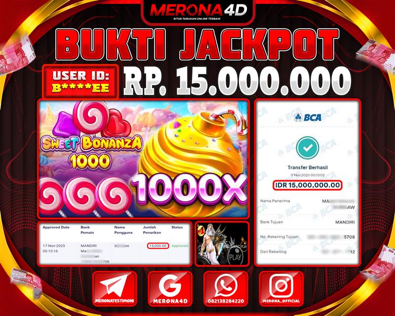 Selamat Kepada Member MERONA4D B*****EE Telah Jackpot Di SWEET BONANZA 1000