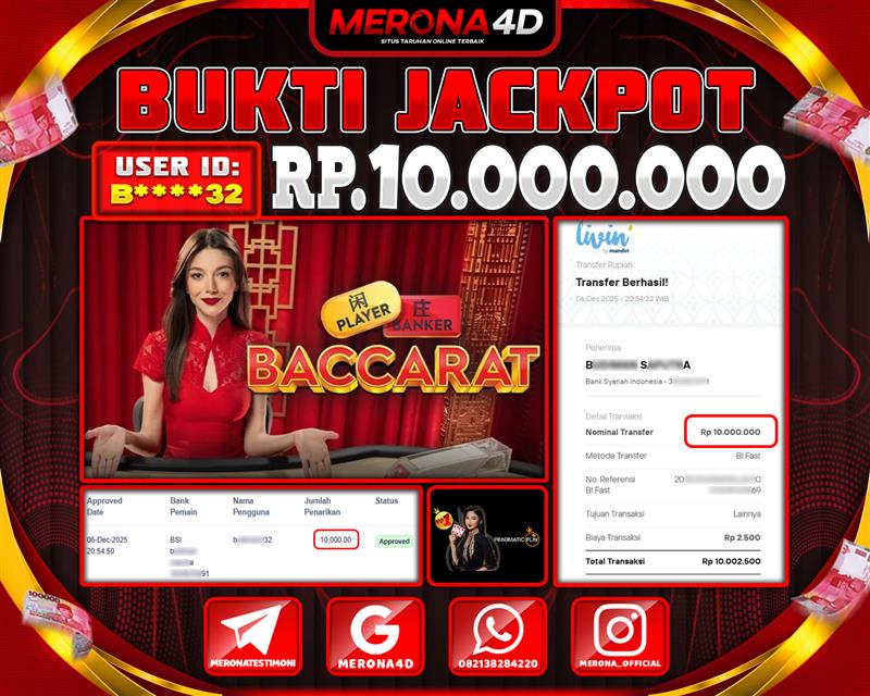 Selamat Kepada Member MERONA4D B*****2 Telah Jackpot Di BACCARAT