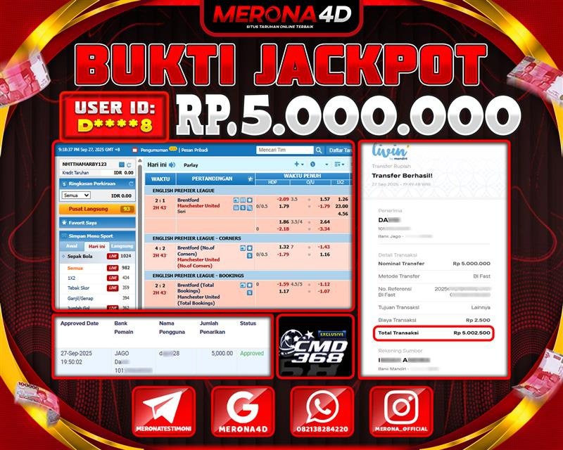 Dari Liga Champions hingga NBA, serta turnamen e-sports favorit seperti Mobile Legends dan Dota 2, MERONA4D menawarkan sportsbook lengkap dengan odds kompetitif dan sistem livescore real-time. Taruhan jadi lebih seru dan transparan!