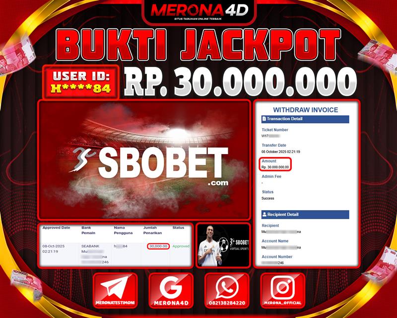 Selamat Kepada Member MERONA4D H*****84 Telah Jackpot Di SBOVIRTUALGAMES