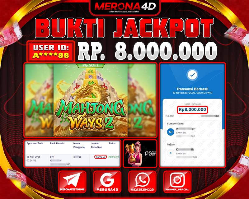 Selamat Kepada Member MERONA4D A*****88 Telah Jackpot Di MAHJONG WAYS 2