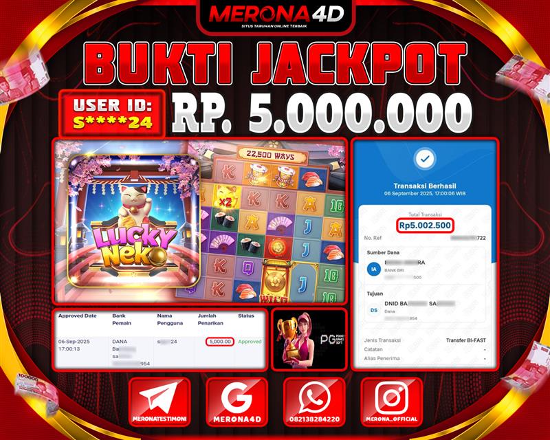 Selamat Kepada Member MERONA4D S*****24 Telah Jackpot Di LUCKY NEKO