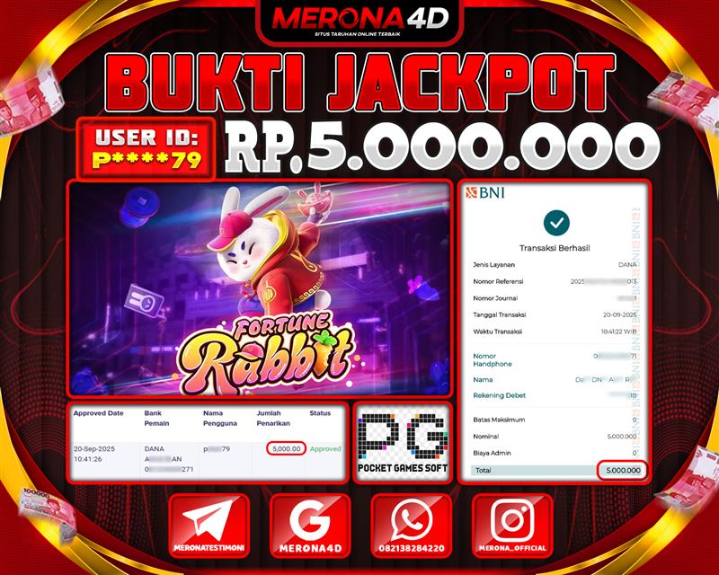 Selamat Kepada Member MERONA4D P*****9 Telah Jackpot Di FORTUNE RABBIT
