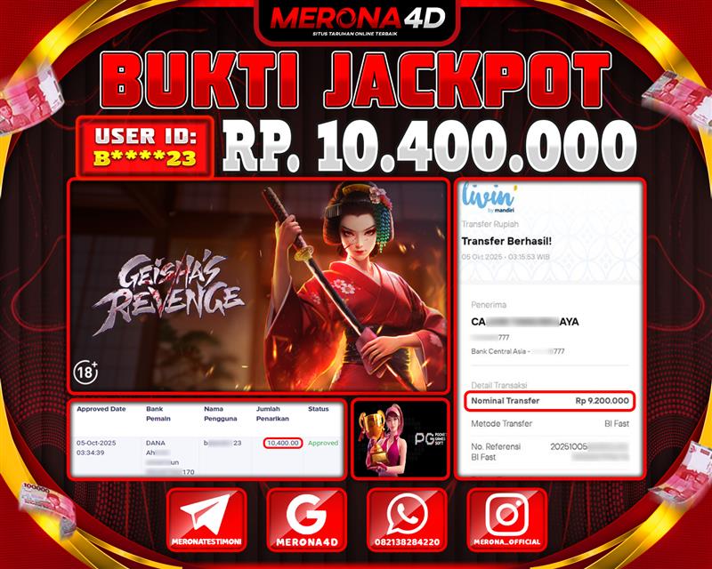 Selamat Kepada Member MERONA4D B*****23 Telah Jackpot Di GEISHA'S REVENGE