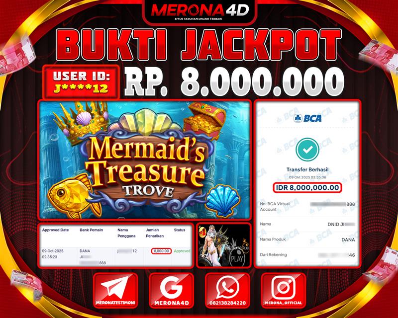 Selamat Kepada Member MERONA4D J*****12 Telah Jackpot Di MERMAID’S TREASURE TROVE