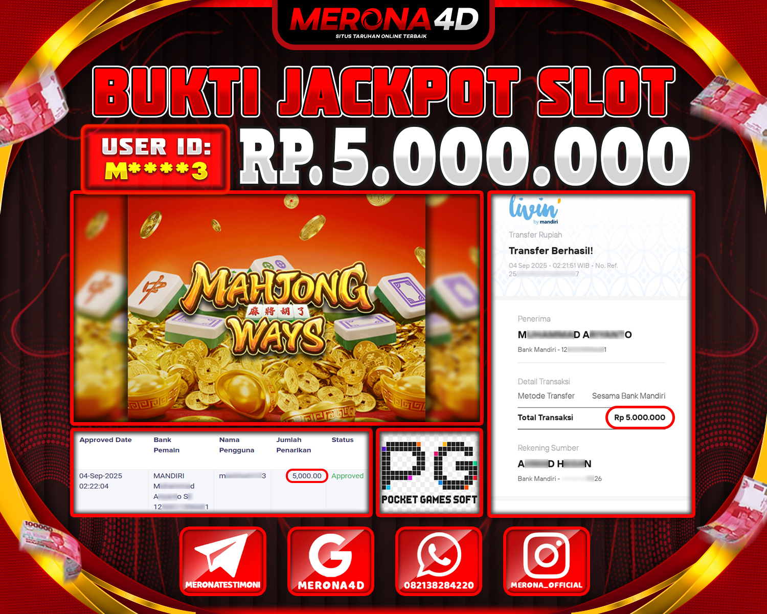 Selamat Kepada Member MERONA4D Aβ­‘οΏ½***οΏ½β­‘N Telah Jackpot Di MAHJONG WAYS