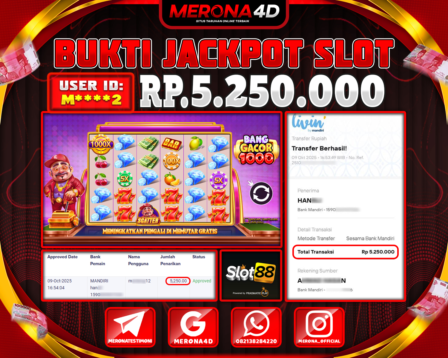 Selamat Kepada Member MERONA4D Mβ­‘οΏ½***οΏ½β­‘2 Telah Jackpot Di BANG GACOR 1000