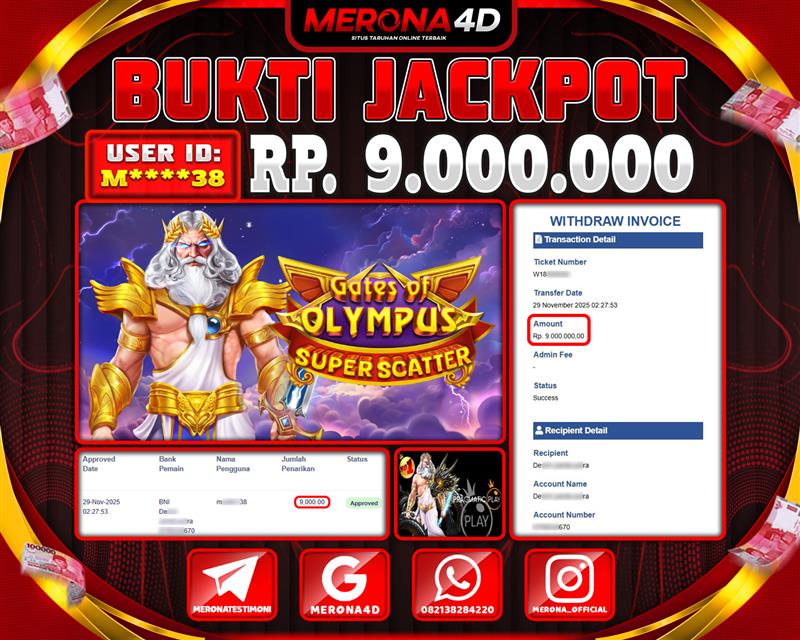 Selamat Kepada Member MERONA4D M*****38 Telah Jackpot Di GATES OF OLYMPUS SUPER SCATTER