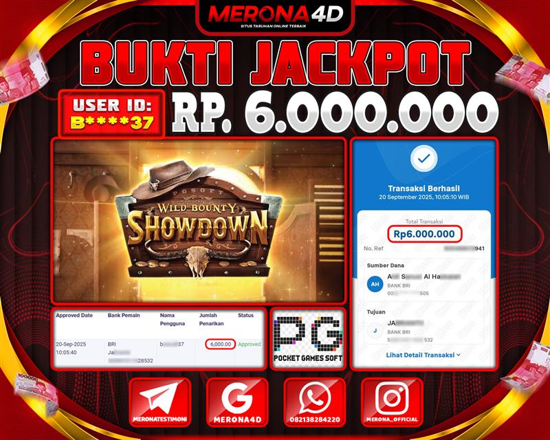 Selamat Kepada Member MERONA4D K*****02 Telah Jackpot Di WILD BANDITO