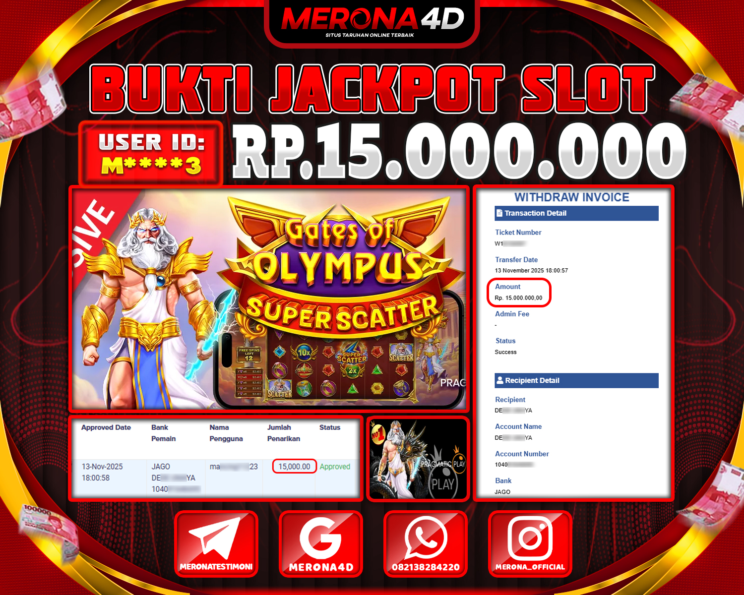 Selamat Kepada Member MERONA4D Mβ­‘οΏ½***οΏ½β­‘3 Telah Jackpot Di GATES OF OLYMPUS SUPER SCATTER