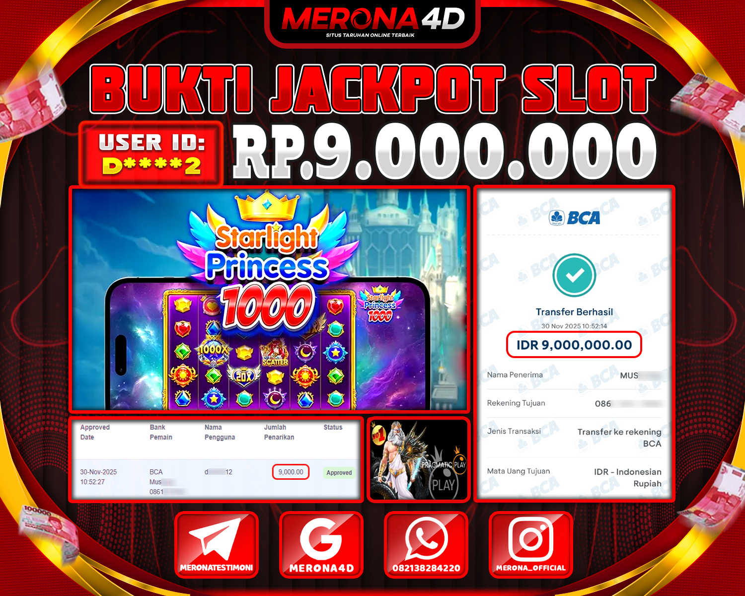 Selamat Kepada Member MERONA4D D****2 Telah Jackpot Di STARLIGHT PRINCESS 1000